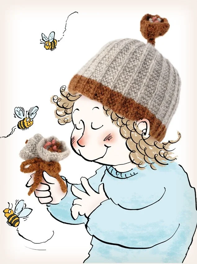 The Flower Toggle is knitted separately and attached to the top of the hat. This particular Flower Toggle Hat is knitted in two contrasting colours of Ullcentrum’s 2 ply pure wool yarn (Sport Weight, 300 meters per 100 grams), which is held double, with a very tiny amount of a third colour for some of the Flower Toggle stamens. Available in three sizes: 2-3 years, 3-4 years and 4-5 years, they range from 44cm (17in) to 48cm (19in) in circumference to 17cm (6in) to 19cm (7in) in depth and are knitted to a tension of 22 sts and 30 rows to 10cm (4in) measured over unwashed stocking stitch.